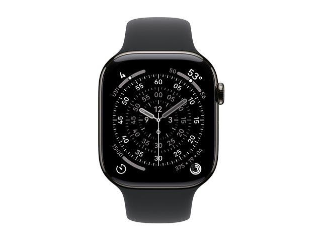 46 mm - skiffer titan - smart klocka med sportband - fluoroelastomer - svart - bandstorlek: M/L - 64 GB - LTE, Wi-Fi 4, UWB, Bluetooth - 5G - 43.1 g