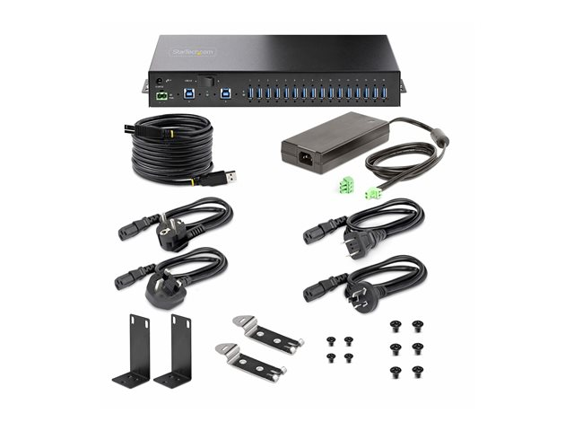 StarTech.com 16-Port Industrial USB 5Gbps Hub with Power Adapter, Metal Enclosure, Mountable, ESD Protection, Terminal Block Power, USB Charging, Dual-Host Switch