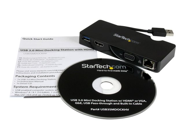 USB 3.0 Mini Docking Station w/ USB, GbE Ports - Portable Universal Laptop Travel Hub (USB3SMDOCKHV) - Dockningsstation - USB - HDMI - 1GbE - för P/N: ARMPIVOT, ARMPIVOTE, ARMPIVSTND, ARMSLIM, ARMUNONB