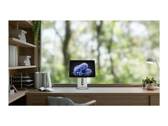 - Information Detta upphöjda ställ för Surface har utformats exklusivt för Surface i samarbete med Microsoft och är ett elegant och kompakt tillbehör för din Surface Pro eller Surface Go som enkelt förbättrar din bekvämlighet, säkerhet och produktivitet. Detta innovativa allt-i-ett ställ höjer Surface till ögonhöjd för att stödja ergonomiska arbetsplatser med externa tangentbord och minska belastningen på nacke, rygg och axlar. Alternativ för lutning och vinkling ger optimala betraktningsvinklar. Stativet har ytterligare genomtänkta funktioner som en magnetisk förvaringsplats för en Surflink -kontakt och en kabelhanteringskanal. Inkluderar professionell support och två års garanti.